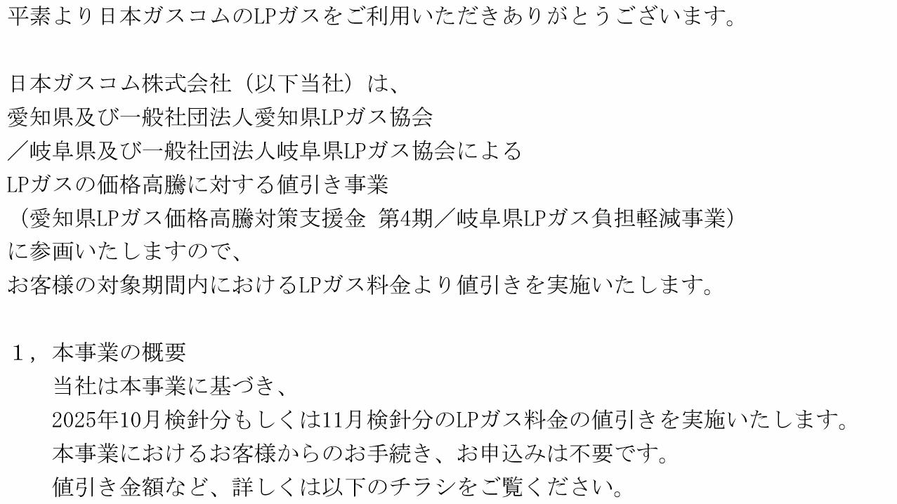 【愛知県・岐阜県 LPガス料金価格高騰支援事業について】